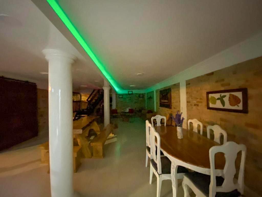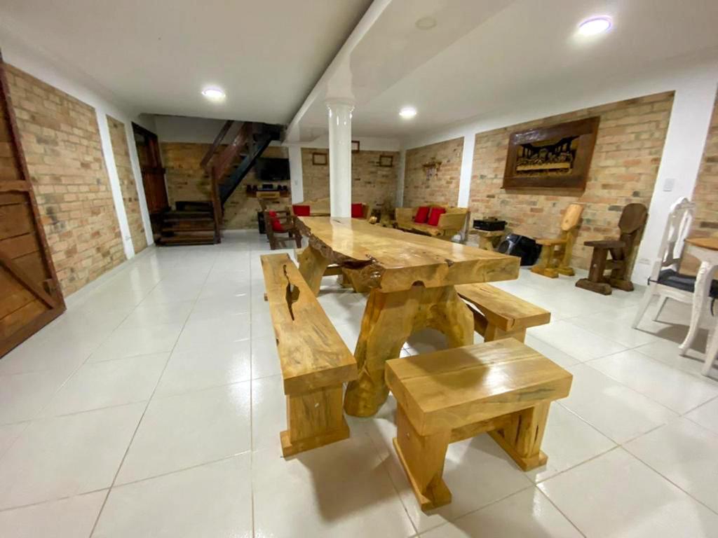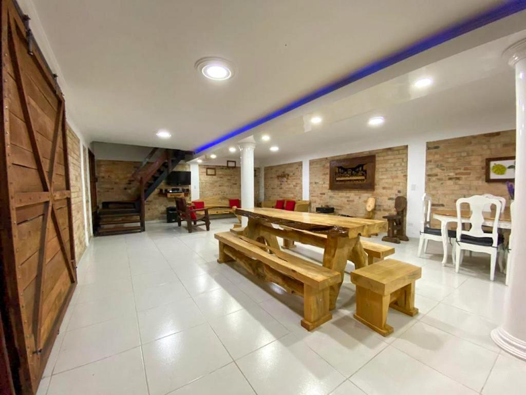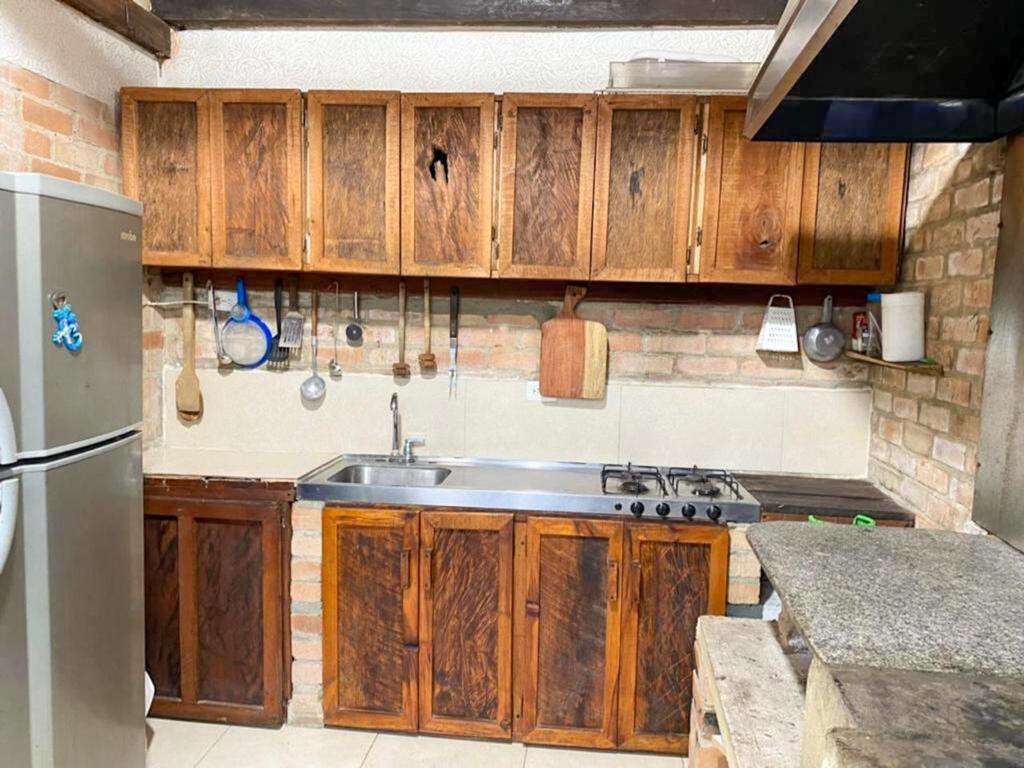 1 cocina grande totalmente equipada (nevera , estufa a gas, platos, vasos, cubiertos y ollas de todos los tamaños) y una hornilla de leña